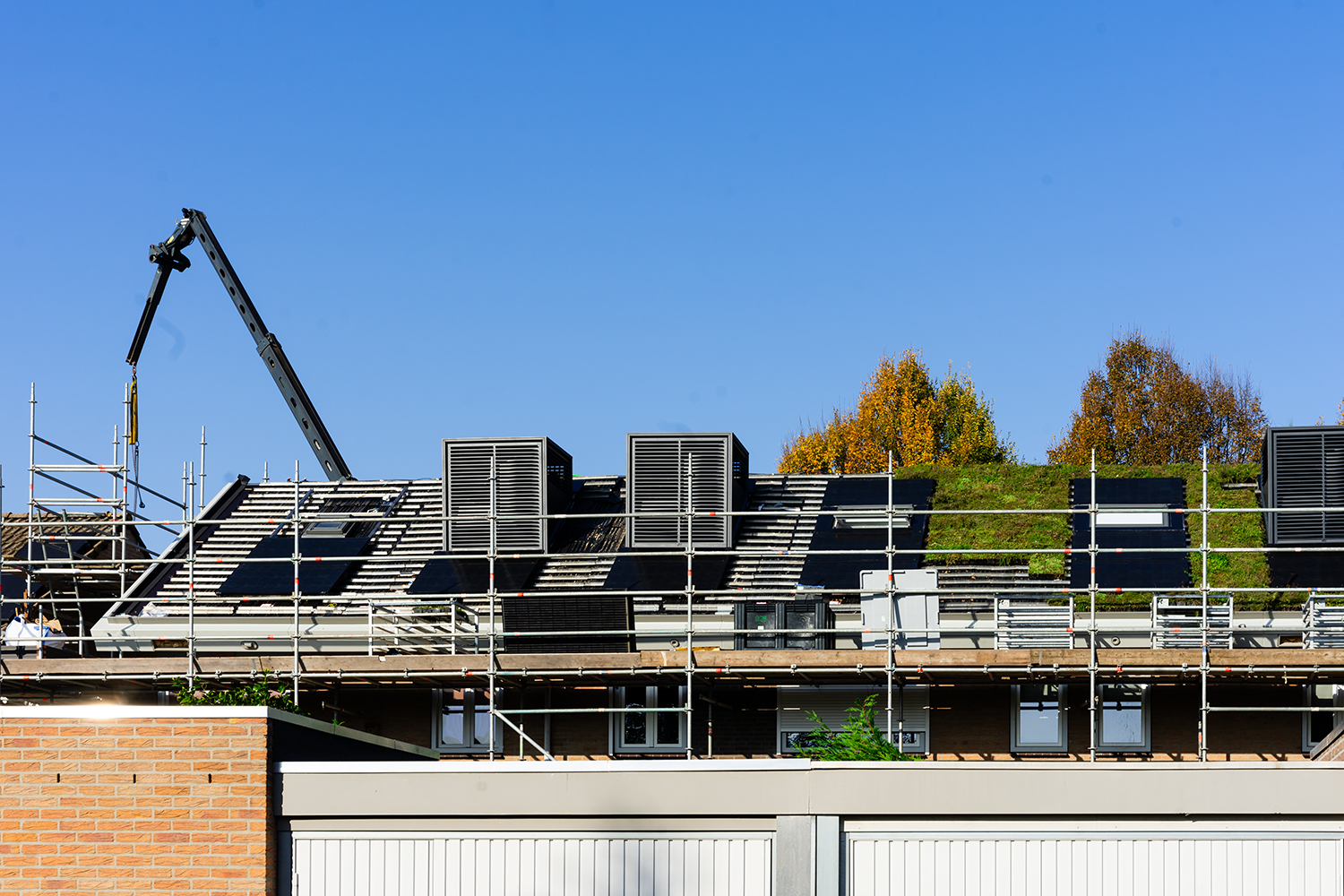 “Bij het plaatsen van ROEF komt elke dag een autolaadkraan in de wijk met precies de benodigde materialen voor die dag. Dat scheelt enorm veel ruimte in de wijk en je hebt alles altijd mooi bij de hand. Je hoeft niet de hele wijk door met de dakplaten en andere materialen. Dat werkt heel prettig.”