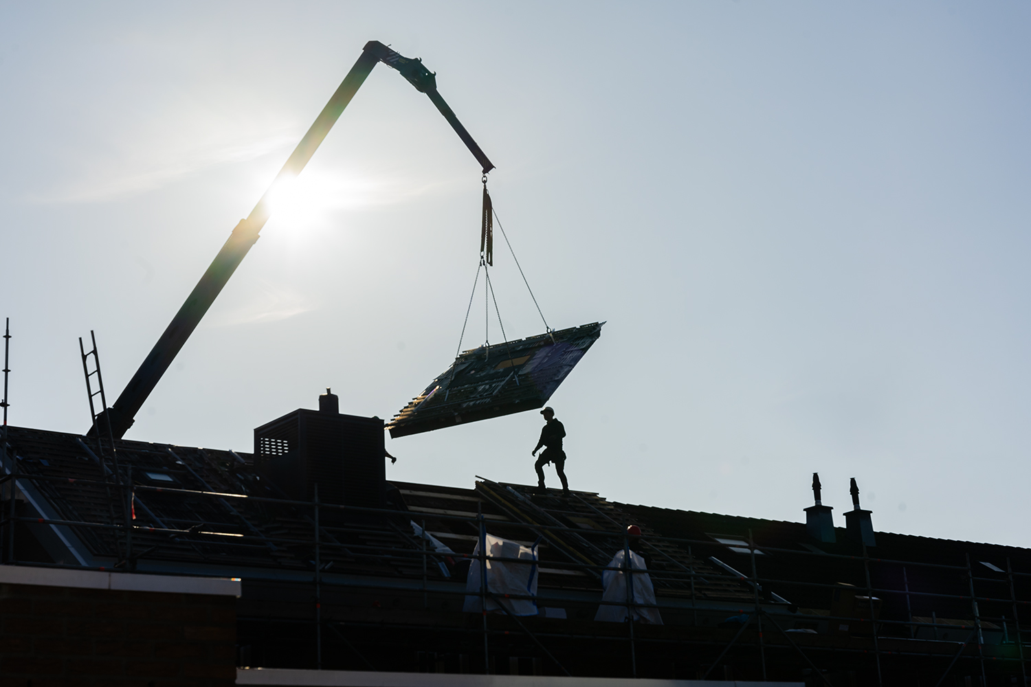 “Wat ook mooi is aan werken met ROEF is dat de aanvoer van materialen gaat in dagproducties. Dat doen we met het leggen van traditionele pannendaken nu ook steeds vaker.”